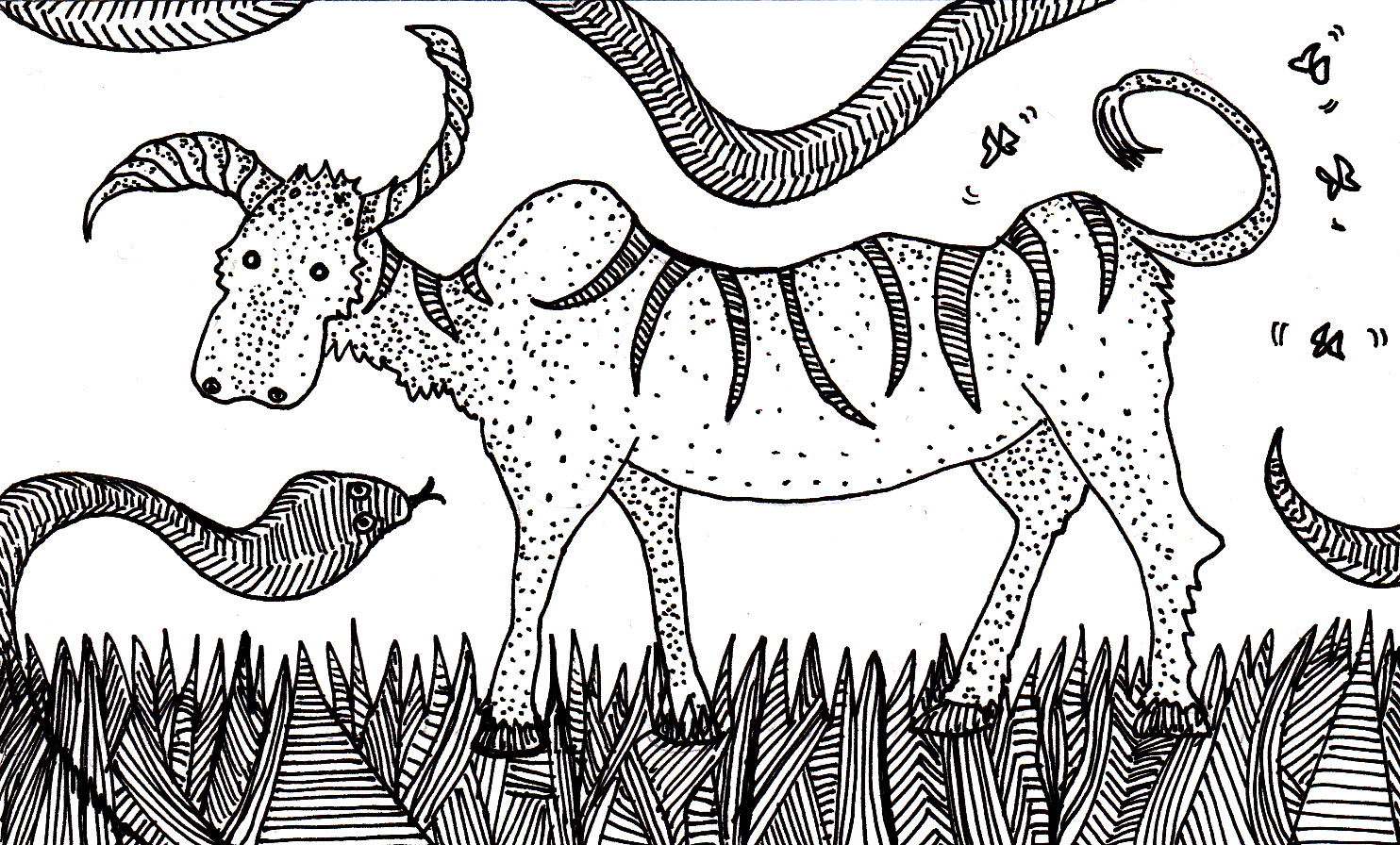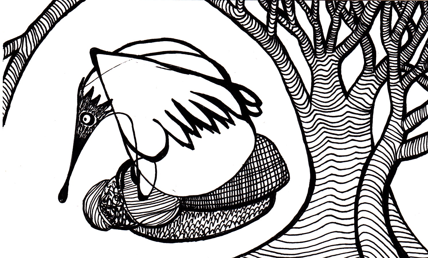 Not a penguin November 1, 2014January 11, 2015 | iriselsewhere Penguin week is over so here is a happy toddler with skulls. The big black blot in its right hand is supposed to be a skull but I decided that it should be holding something rather late which is why big black blotness.