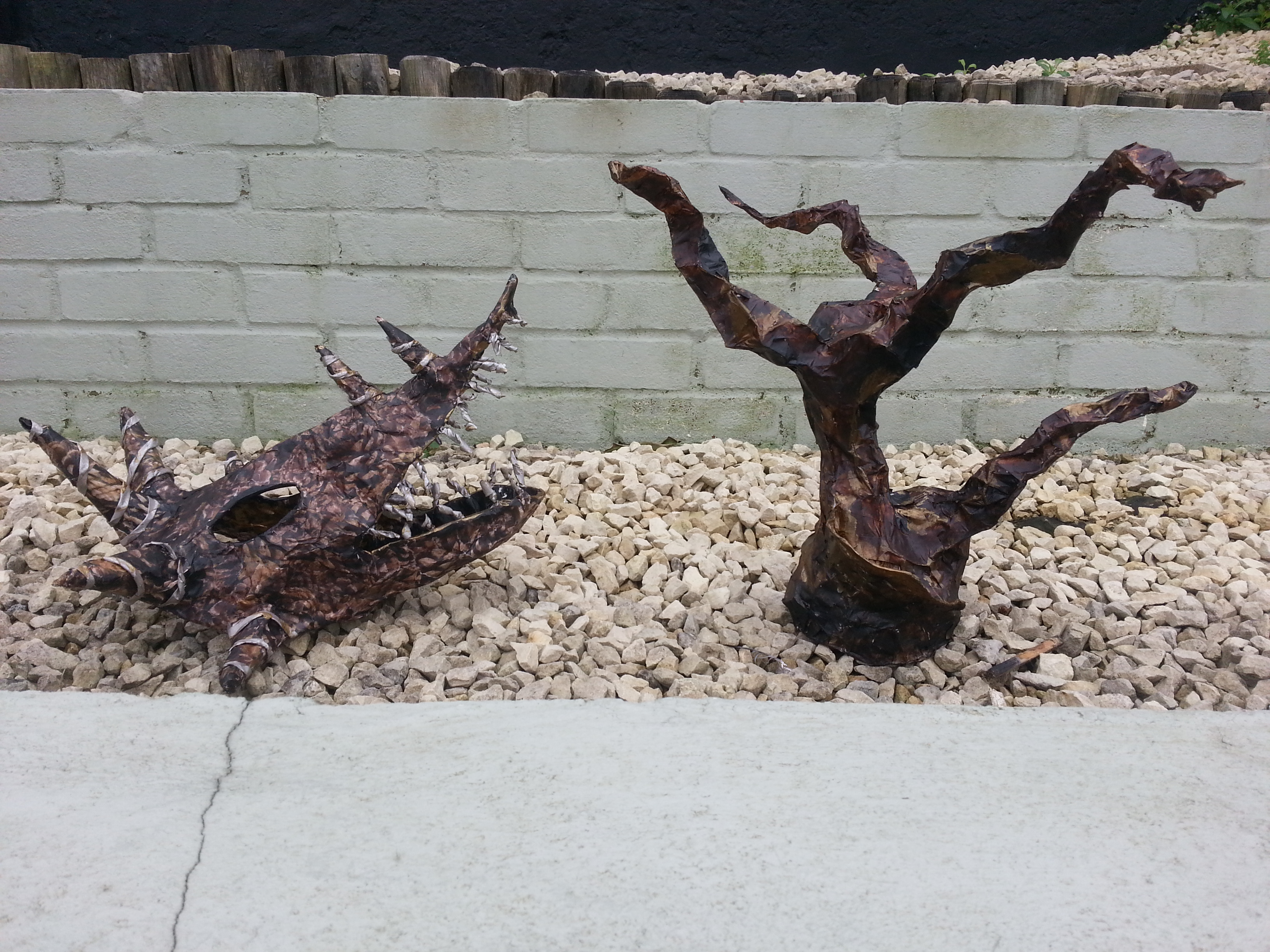 So today was the Fairy Tale Fair, the dragon got to hoard some necklaces and Bags of Holding and the tree got to hold lots of flowers, which it was highly pleased with what with feeling a bit naked without any leaves or anything. The dragon is back because a) I like it and b) I gave it a dark wash to make the silver swirly bits stand out more and also make it look more tree stump-y (it’s supposed to look like a tree-dragon… treegon?) so I think it looks better. Also to reward it since some of its hoard got sold but it didn’t flame anyone. Way to go, dragon!