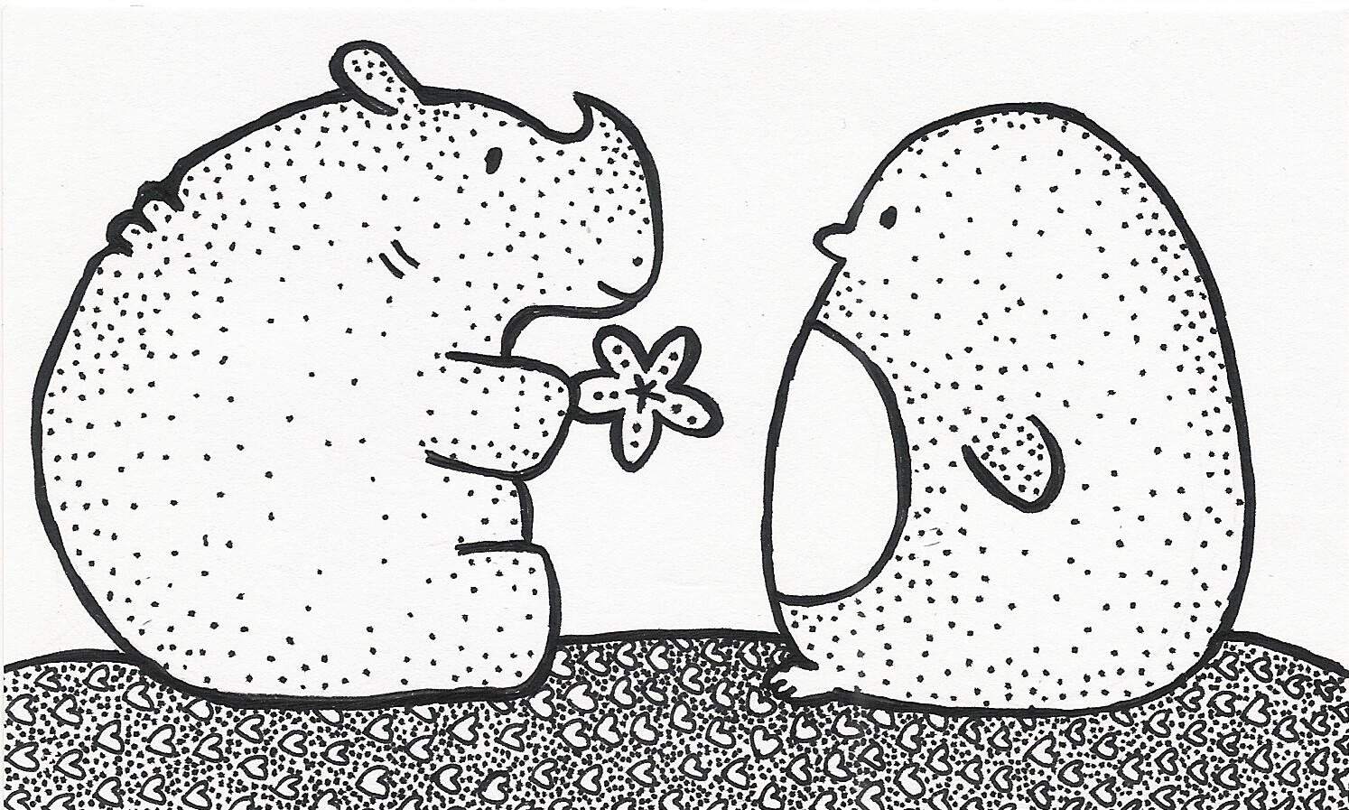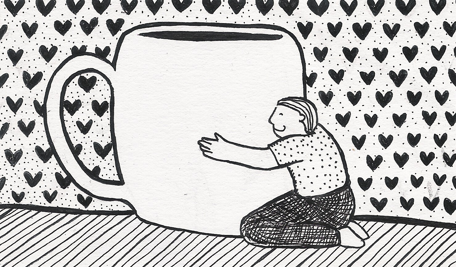 So I was trying to redraw my Coffeehug picture to make it look more interesting. First I tried just adding some hearts in the background: