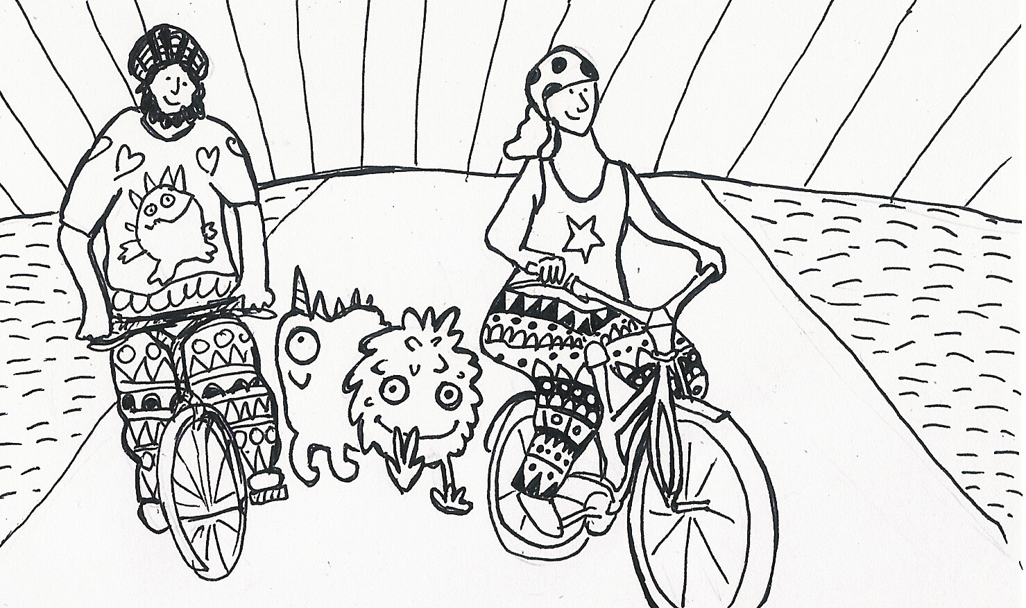 The good thing about crazy pants is that a) they attract monsters and b) they can cover your bicycle well, leaving less for me to draw!