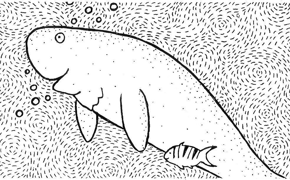 The word generator told me to draw a Dugong today, and I must say that they are very pleasingly goofy-looking when you look them up! Only now I have that A-dugong-gong-gong song stuck in my head. You know the one, someone’s name is Bill, someone’s heart stood still, he walked someone home… I’m not sure what happened afterwards, but there were a lot of chorus girls involved. And a Dugong. Gonggong. A Dugonggong.