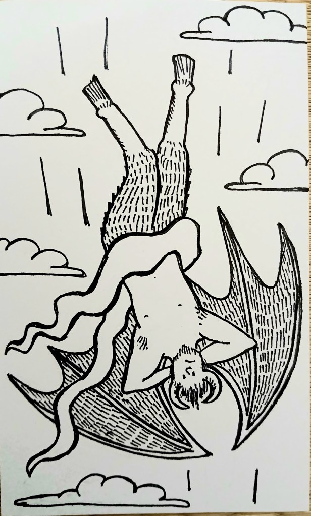 So I came across that line from Paradise Lost – “From morn to noon he fell, from noon to dewy eve, a summer’s day” – and I know it’s the point but that is a LONG time to be falling and surely even Miltonic Satan can’t keep the angst up that long? Like undoubtedly he was upset but you can’t tell me at no point did he not get bored and start picking his nose or make some silly flying shapes or try to get a novel out of his pocket only for it to fly away and give up and just sulk for a bit because ARE WE NEARLY THERE YET