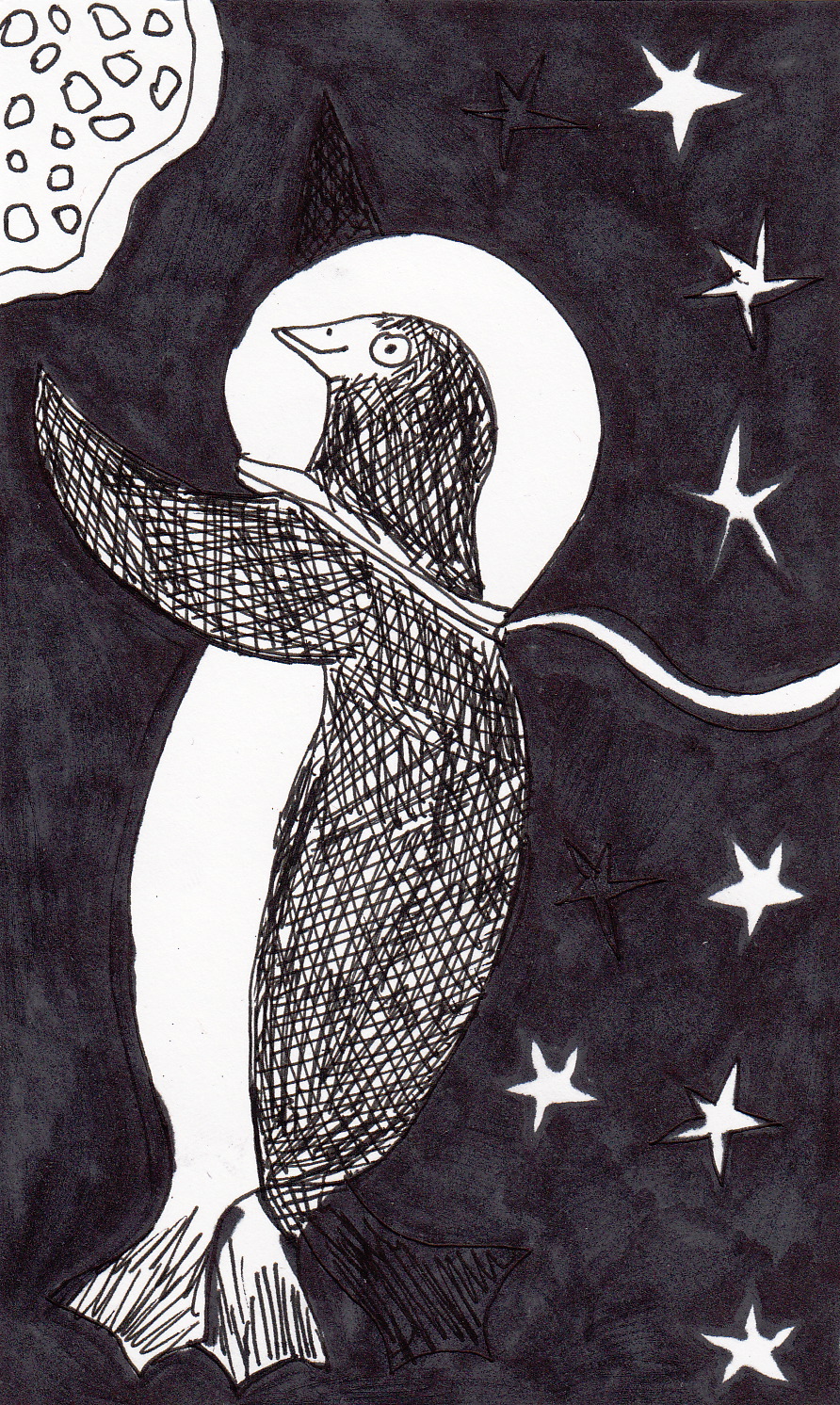 The bubble thing around his head is meant to be an astronaut’s helmet, if you’re wondering. I have no idea what the thing on the top left is supposed to be.